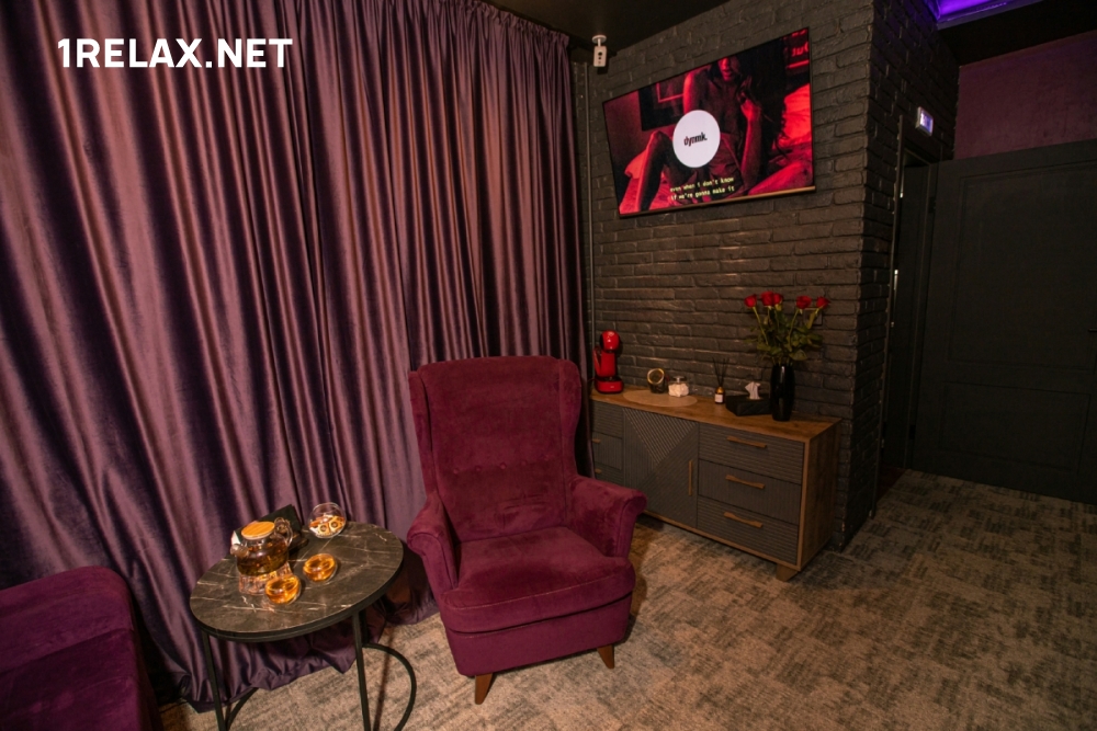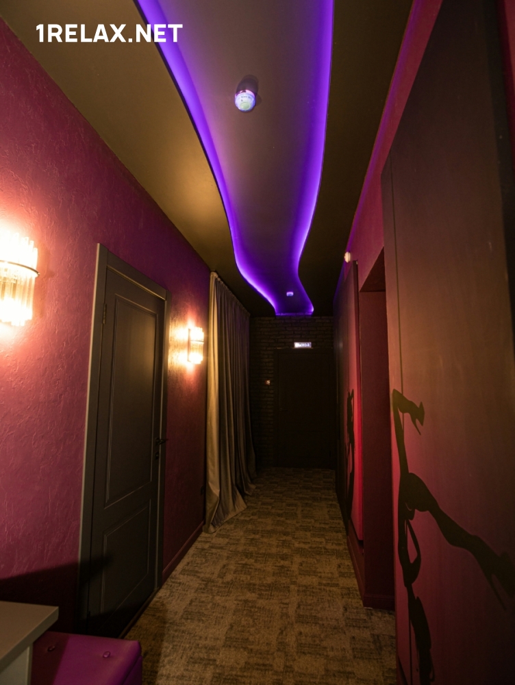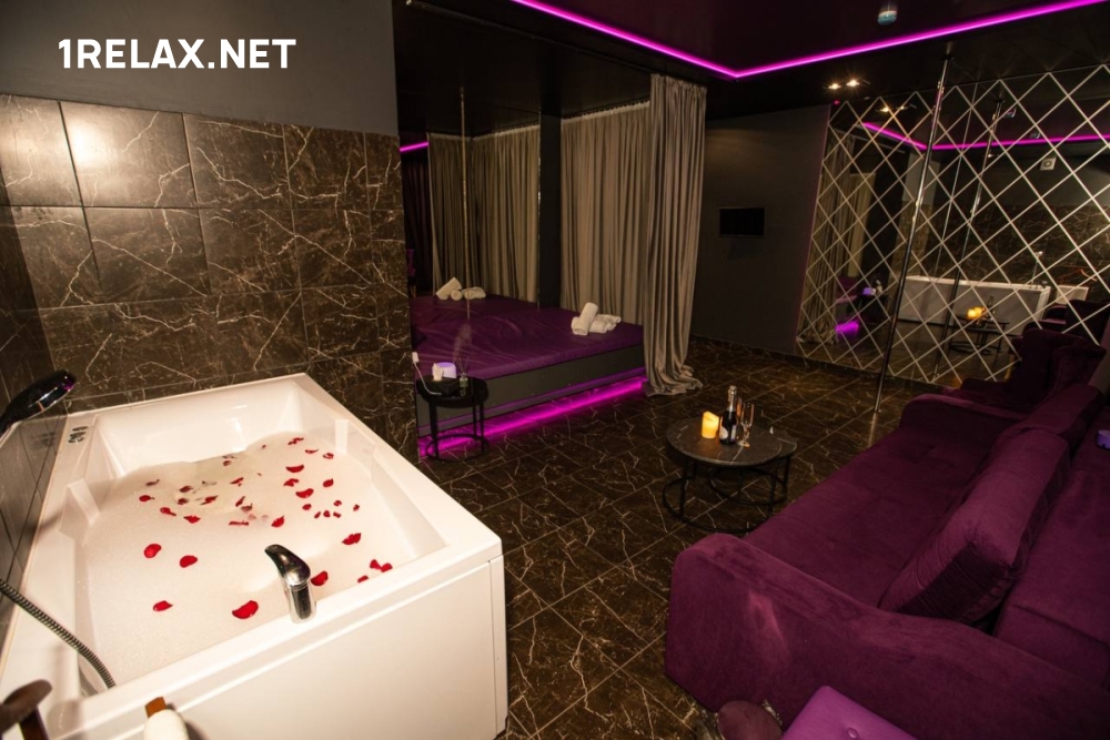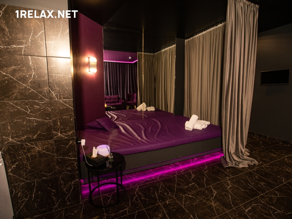 В каждой комнате массажного салона есть огромные кровати, удобный диван для отдыха, телевизор и кондиционер. Установлен шест для стриптиза, так что каждый гость сможет насладиться эротическим танцем и разбудить чувственность. Для водных процедур предусмотрены душ или джакузи.