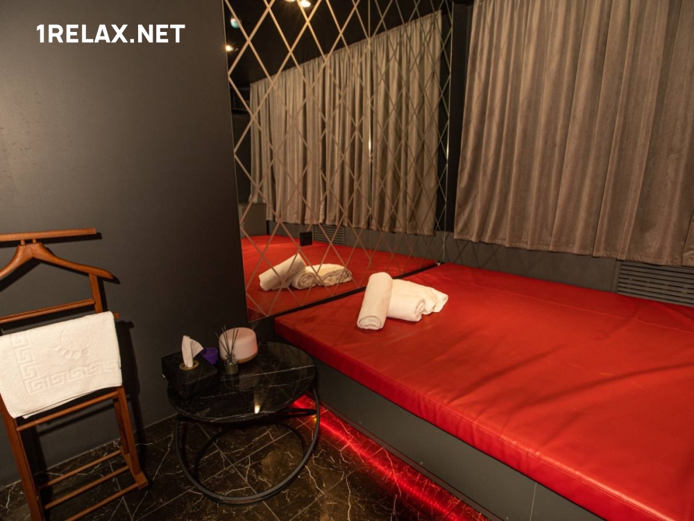 В массажном салоне три комнаты. Стильный и красивый интерьер с первого взгляда настраивает на отдых. Приятные оттенки, приглушенная подсветка, роскошная обстановка понравятся даже самому искушенному в наслаждениях гостю.